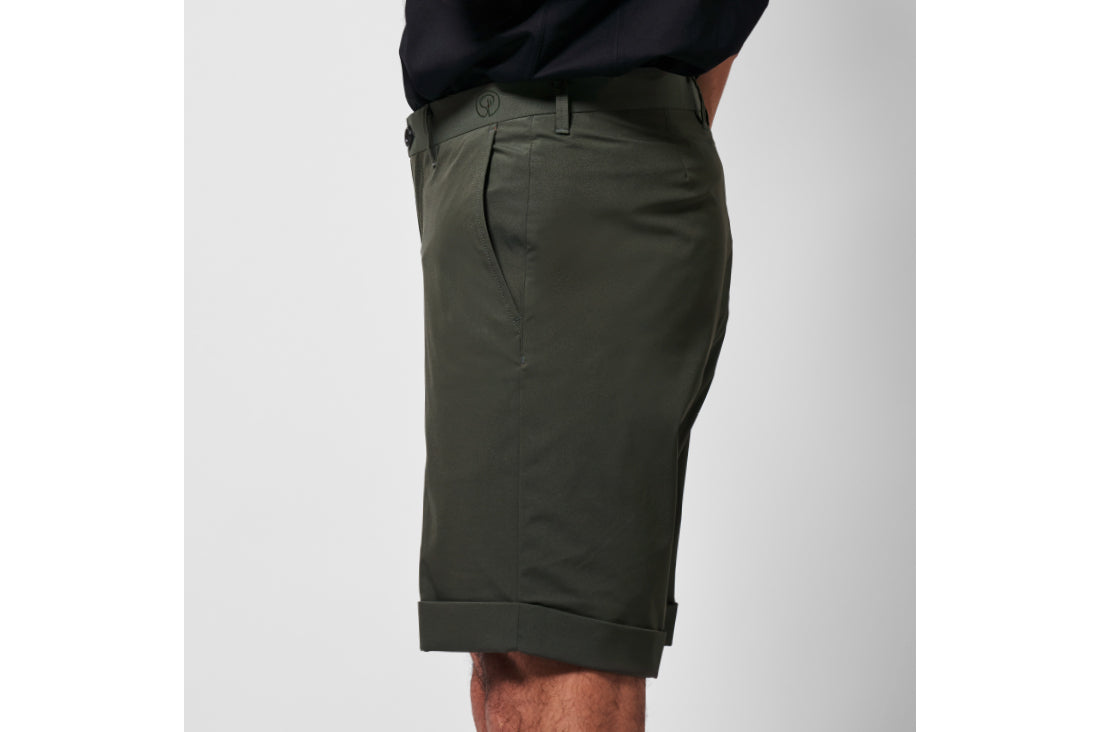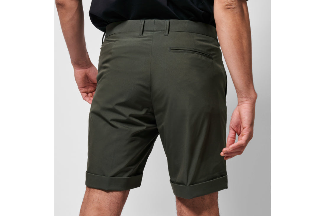 主にサトウキビを原料とした植物由来合成繊維「エコディア」というナイロン素材を使用した撥水ストレッチ。合繊の産地、北陸で高密度に織られた生地は縦横に伸び、さらに超軽量。スポーティで機能性にも優れたストレスフリーなテクニカル素材でより心地よく。
